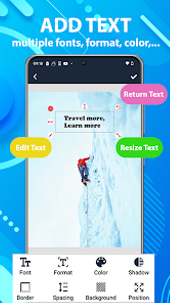 Text on Photo, Android platformunda kullanıcıların fotoğraflarına metin eklemelerini sağlayan ücretsiz bir uygulamadır. Kolay kullanımı ve sezgisel tasarımı sayesinde, kullanıcılar sadece birkaç adımda güzel kartlar oluşturabilirler. Uygulama, çeşitli kategorilere ayrılmış birçok sanat görüntüsü sunarak, kullanıcıların doğa, aşk ve ışık gibi temalarla çalışmasına olanak tanır. Ayrıca, metinlerin rengini, fontunu, boyutunu ve konumunu özelleştirme imkanı sunar.
